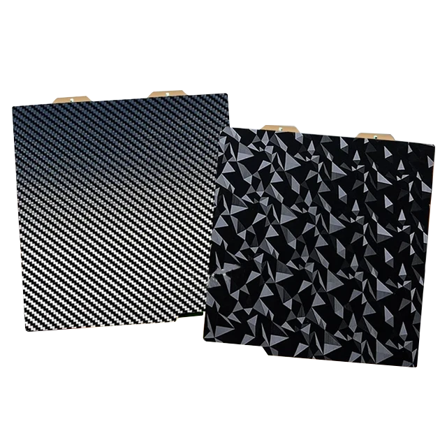 Une large diversité de filaments peut être imprimée sur ce plateau. Nous recommandons d’utiliser le PET pour le PLA, le PETG et le TPU et de préférer le PEO pour l’ABS.